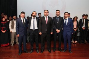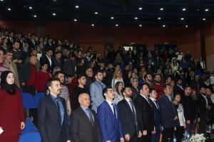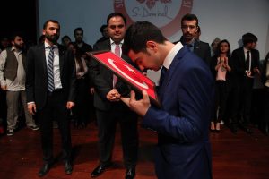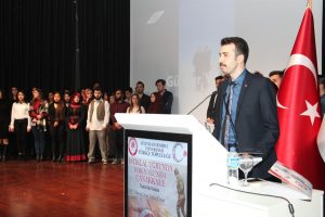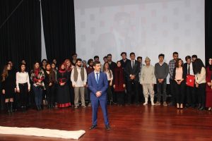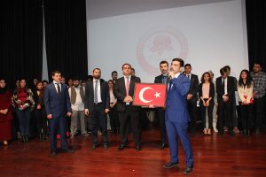 Bayrağı devreden Mertcan Arıtürk Konuşmasında Türkçe Topluluğu’nun başarısının ben değil biz olabilmekte saklı olduğunu, ilham veren üniversitede ilham veren öğrenci topluluğu olduklarını ve diğer toplulukların ışıkları sönerken türkçe topluluğunda çalışmaların sabahlara kadar devam ettiğini vurguladı. Bu bayrağı en güzel yerlerde dalgalandıracağına inandığı türkçe topluluğu yeni yönetimine başarılar diledi. Sözlerine son verirken üniversitemiz yönetimine ve rektör yardımcıları Prof. Dr. Sedat Aktan’a ve Prof. Dr. Nihat Ayyıldız’a teşekkür etti.
