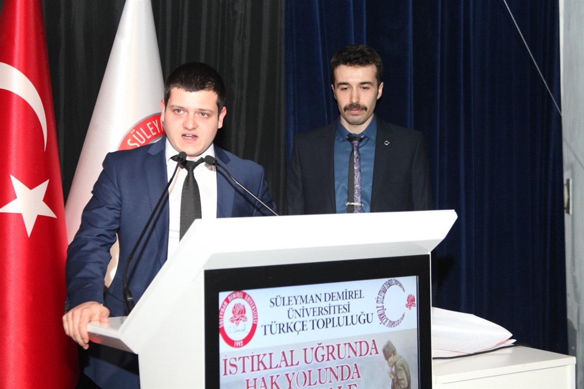 Topluluk başkan vekili Ferdi Çakar, Türkçe Topluluğu ile tanışmasını üniversite yıllarının ilk günlerinde olduğunu dile getirirken Türkçe Topluluğu’na katılmadan önce ‘‘Çanakkale’yi hep eksik yaşamışım, Sarıkamış’ta hiç donmamışım, 25 günlük öğretmenken şehit edilen neşe öğretmeni tanımamışım, belki de benimle aynı gün doğacakken yapılan hain saldırıda Hocalı’da katledilen o anne karnındaki bebekleri ve 613 kişiyi hiç duymamışım, yedi düvel yurdu kuşatmışken askeri dehasıyla düşmanları denize döken, okuduğu ve yazdığı kitaplarla, yaptığı inkılaplarla bilimin ışığıyla cehaleti yenen, muhtaç olduğun kudret damarlarındaki asil kandadır diyerek türk gençliğine cesaret aşılayan Gazi Mustafa Kemal Atatürk’ü hiç tanımamışım.’’ dedi.