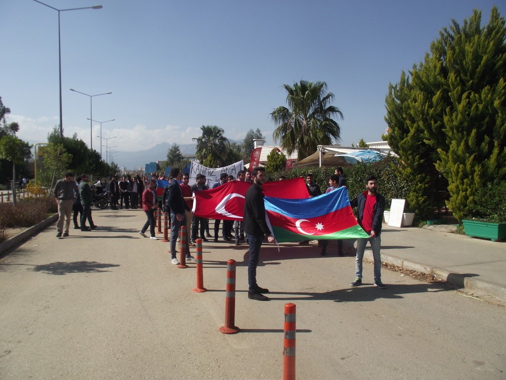 Hocalı Soykırımının 24. Senesinde Akdeniz Üniversitesi Avrasya Araştırmaları Topluluğu tarafından düzenlenen etkinliklerde; Hocalı Soykırımında katledilenleri anmak ve Ermenî terörünü lanetlemek amacıyla yürüyüş ve soykırıma ait fotoğrafların gösterildiği sergi düzenlendi. Akdeniz Üniversitesi Yakut Çarşısı’nda saat 13.00’de başlayan yürüyüşe yoğun katılım dikkat çekti. Yürüyüş sonrasında basın açıklamasında bulunan Genel Sekreter Yardımcımız ve Avrasya Araştırmaları Topluluğu Başkanı Mustafa Koçyegit; “Tarihi ve hukuki olarak Azerbaycan’a ait olan Dağlık Karabağ bölgesinin Ermenilerce işgal edilmesi sonrasında kaçış yolu bırakılmayan Azerbaycan Türkleri, tarihin gördüğü en büyük vahşetlerden birine maruz kalarak anne karnındaki bebeklerine kadar katledildiler!” dedi. Öte yandan Koçyegit, BM İnsan Hakları Bildirgesinin 2, 3, 5, 9 ve 17. maddelerinin ihlal edildiği bu vahşetle ilgili bugüne kadar hiç kimse yargılanmadığını ve Hocalı soykırımına katılmış Ermenilerin ve onların yardımcıları, yaptıkları insan haklarına ve uluslararası hukuki antlaşmalara -Cenevre Sözleşmesi, İnsan Hakları Beyannamesi, Vatandaş ve Siyasi Haklar Konusunda Uluslararası Sözleşme, Ateşkes Zamanında ve Askeri Çatışmalar Zamanı Kadın ve Çocukların Korunması Beyannamesi’ne- karşı olarak işlenmiş bir soykırım suçu olduğunu ifade etti. Dünya kamoyunun Hocalı soykırımına sessiz kalmasını eleştiren Mustafa Koçyegit, “Türk’ün mührünü tarihin alnına vuran aziz ecdadımıza mahcup olmamak için ne gerekiyorsa yapacağız. Bedelse, ödeyeceğiz! Çileyse, çekeceğiz! Fakat Türk’ün namus ve şerefini kesinlikle yere düşürmeyeceğiz.” ifadeleriyle basın açıklamasını bitirdi.